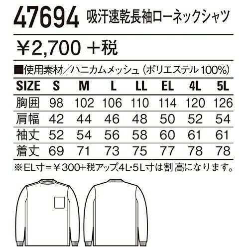 他の画像を見る 自重堂 Field Message 長袖Tシャツ 47694 長袖ローネック 春夏 カジュアル 特別価格 ¥ 1,650 税込 〜 特別価格 ¥ 税込 吸汗速乾に優れ、爽快感をずーっと持続。 詳細を見る お気に入りに登録する