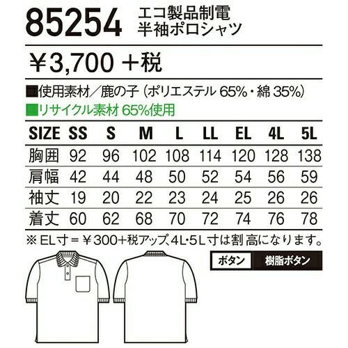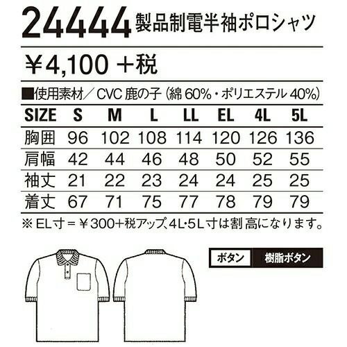 他の画像を見る 自重堂 DESK 作業服 24454 半袖ポロシャツ 春夏 ユニセックス メンズ・レディース対応 作業着 ポロシャツ 特別価格 ¥ 2,134 税込 〜 特別価格 ¥ 税込 サービス業、軽作業にぴったりの商品 詳細を見る お気に入りに登録する