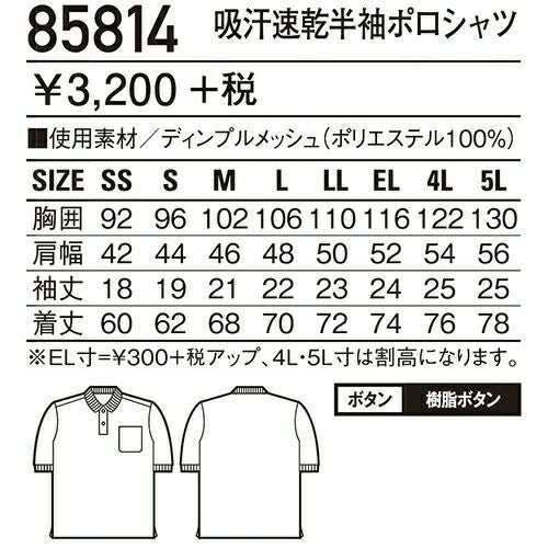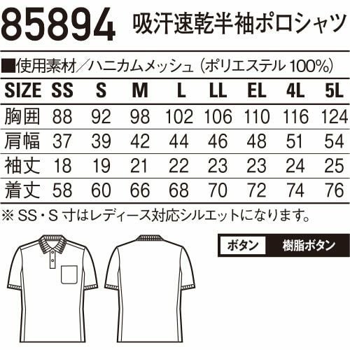 他の画像を見る 作業服 ポロシャツ 半袖 自重堂 JICHODO 吸汗速乾半袖ポロシャツ 85894 作業着 春夏 特別価格 ¥ 1,650 税込 〜 特別価格 ¥ 税込 吸汗速乾性の高いハニカムメッシュを使用したスリムフィットポロシャツ 詳細を見る お気に入りに登録する