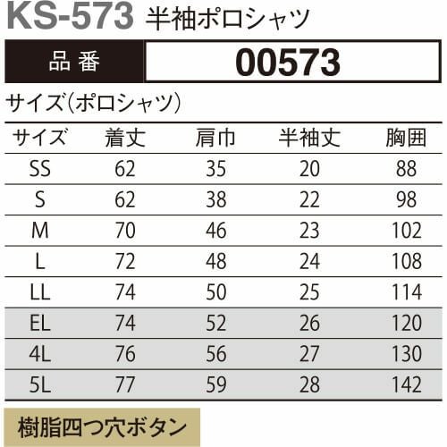 他の画像を見る 作業服 ポロシャツ 半袖 大川被服 kansai uniform SOFT WORK カンサイユニフォームソフトワーク KS-573 半袖ポロシャツ 00573 作業着 春夏 特別価格 ¥ 3,220 税込 〜 特別価格 ¥ 税込 紳士シャツをベースに生まれた、見られることを意識した、上質ポロ。 デザインのベースとなっているのは仕立ての良さを追求した紳士シャツで、多目的にご使用いただけるボタンダウンシャツです贅沢にザックリと鹿の子編みした生地は、優しい光沢感があり、風合いや肌ざわりにも高級感がありますポリエステル100%なので、ハードに洗濯しても色落ちや毛羽立ちが目立たず、接客業で大切な「見た目」に十分配慮した商品ですまた、SS/Sサイズは肩幅・アームホールなど女性の体系に合わせた別パターンを使用しているため、女性の方もジャストフィットで着られます 詳細を見る お気に入りに登録する