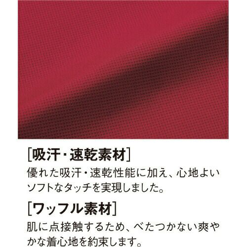 他の画像を見る 作業服 ポロシャツ 半袖 大川被服 kansai uniform SOFT WORK カンサイユニフォームソフトワーク K5034 ドライポロシャツ 50343 作業着 春夏 特別価格 ¥ 3,110 税込 〜 特別価格 ¥ 税込 カジュアルな印象のワッフル素材は、汗でもベトつかず、快適な着心地。 素材の表面がワッフル状に凹凸しているため、カジュアルな印象ですまた、凹凸面が肌に点接触しているので汗をかいてもベトつかず、サラッとした着心地を実現しかも、吸汗速乾性にすぐれたポリエステル100%の素材だから、形態安定にも優れています 詳細を見る お気に入りに登録する