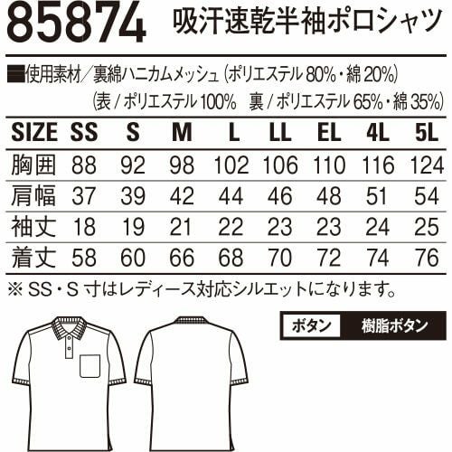 他の画像を見る 作業服 ポロシャツ 半袖 自重堂 JICHODO 吸汗速乾半袖ポロシャツ 85874 作業着 春夏 特別価格 ¥ 1,947 税込 〜 特別価格 ¥ 税込 吸汗速乾性に優れ、肌触りの良い裏綿素材を使用したスリムフィットポロシャツ 詳細を見る お気に入りに登録する