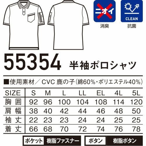 他の画像を見る 自重堂 作業服 85254 半袖ポロシャツ 春夏 ユニセックス 作業着 半袖 ワークウエア ポロシャツ 特別価格 ¥ 2,244 税込 〜 特別価格 ¥ 税込 爽やかさが映えるポロシャツは、ワークシーンにも最適。 詳細を見る お気に入りに登録する