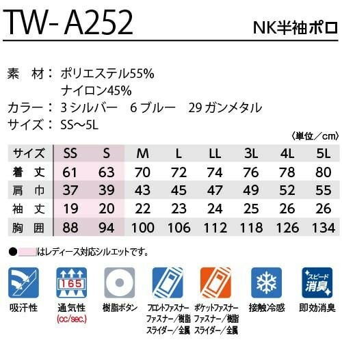 他の画像を見る 作業服 ポロシャツ 半袖 タカヤ商事 TAKAYA NK半袖ポロシャツ TW-A252 作業着 春夏作業着 作業服 ポロシャツ 春夏 特別価格 ¥ 5,489 税込 〜 特別価格 ¥ 税込 ドビーストレッチによる運動性と、視認性による安全性と掛け合わせたワンランク上のワークウェア! 1.要所に配置した3M Scotchlite反射材で周囲からの視認性を確保し夜間作業や倉庫内作業等での車両事故リスクを軽減2.科学の力でアンモニア臭などをスピード消臭&効き目長持ち3.吸水酷寒機能でサラッと快適4.ナイロンミックスによるひんやり接触冷感5.多彩なコーディネートが可能6.レディース対応も充実、世代を選ばない人気モデル7.通気性を高める3MScotchliteコンフォートトリムを採用8.高い通気性能(通気度:165cc/sec)■化学の力で即効消臭「クリーンメル CLEAN MELL」即効性・消臭性・洗濯耐久性に優れています。即効性:消臭成分が立体になっているので、接触効率が良く、アンモニア・アミン臭などを素早く消臭します。洗濯耐久性:化学反応により繊維の分子と結合しているので、洗濯により、消臭機能が欠落することがほとんどありません。消臭翼:消臭成分を多く結合することでニオイを吸着する容量を大きくすることができます。また、温度などに影響されず、ニオイの再放出がありません。選択消臭:香水やアロマの良い香りは残しながら、アンモニアなどの生活の気になる臭いだけを軽減します。 詳細を見る お気に入りに登録する