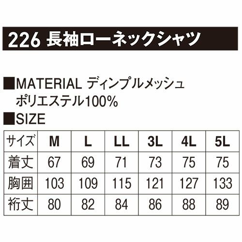 Tシャツ 長袖 ホシ服装 長袖ローネックシャツ 226 長袖Tシャツ 吸汗速乾 抗菌防臭 消臭