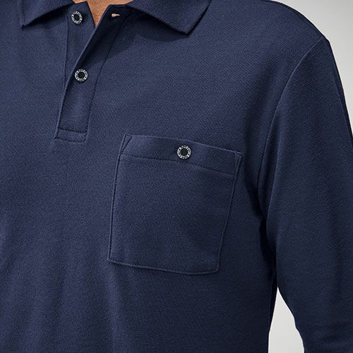 吸汗速乾性に優れた長袖・半袖ポロシャツ両脇に消臭テープと表からは見えにくいコンシールファスナー、左袖にはペン差しを装備