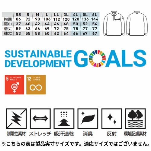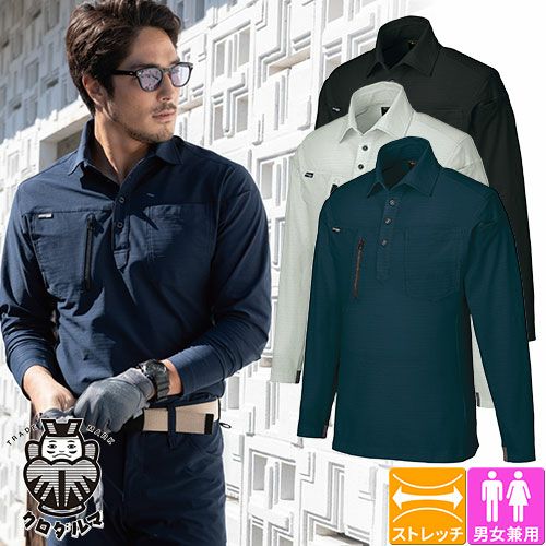 作業服 ポロシャツ 長袖 クロダルマ 長袖ポロシャツ 25686 作業着 春夏 リサイクル素材 ストレッチ 制電 通気 軽量 男女兼用 環境配慮