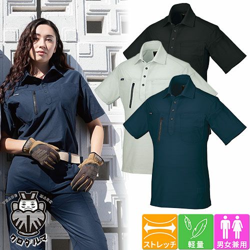 作業服 ポロシャツ 半袖 クロダルマ 半袖ポロシャツ 26686 作業着 春夏 リサイクル素材 ストレッチ 制電 通気 軽量 男女兼用 環境配慮