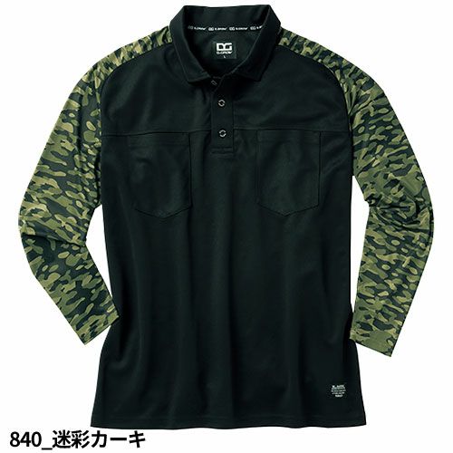作業服 ポロシャツ 長袖 クロダルマ D.GROW ハイブリッドポロシャツ DG812 作業着 春夏 通気 ストレッチ 消臭 左袖ペン差し 吸汗速乾 カジュアル アウトドア タウンユース スポーツ