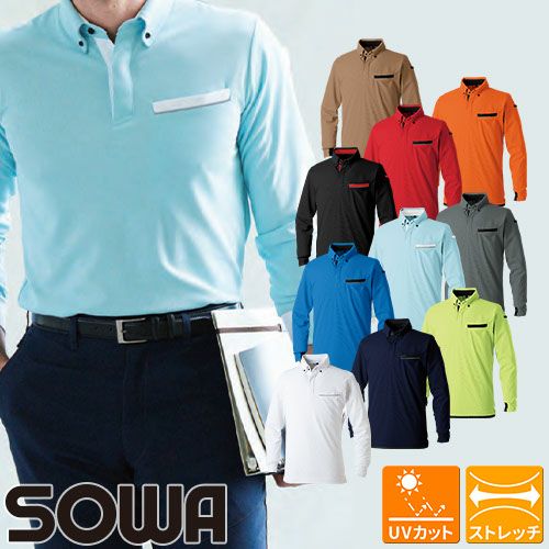 長袖 ポロシャツ 作業服 作業着 シャツ 桑和 SOWA 7335-50 春夏 胸ポケット ストレッチ シンプル 無地 紫外線対策 ワークウェア ワークシャツ 人気 制電 吸汗 速乾 ドライ メンズ レディース おしゃれ オシャレ かっこいい