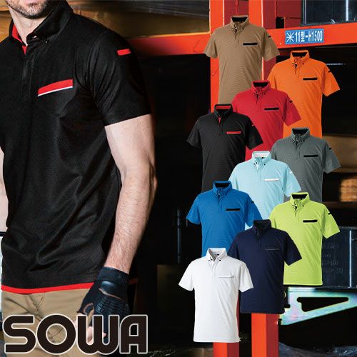 半袖 ポロシャツ 作業服 作業着 シャツ 桑和 SOWA 7335-51 春夏 胸ポケット ストレッチ シンプル 無地 紫外線対策 ワークウェア ワークシャツ 人気 制電 吸汗 速乾 ドライ メンズ レディース おしゃれ オシャレ かっこいい