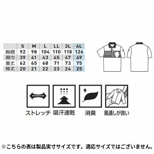 通気性に優れた本体と伸縮性に優れた袖を組み合わたハイブリッドポロシャツ両脇に消臭テープ、左袖にペン差しを装備吸汗速乾性にも優れています。