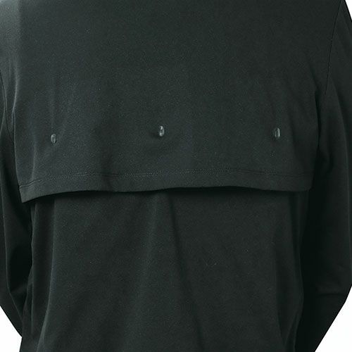 FB-700のロングスリーブバージョン。ミディアムウェイト仕様。 ドライで着心地がよく透けにくいハイブリッド仕様綿を外側に、接触冷感+吸汗速乾ポリエステルを肌側にした2層構造が快適な着心地を実現