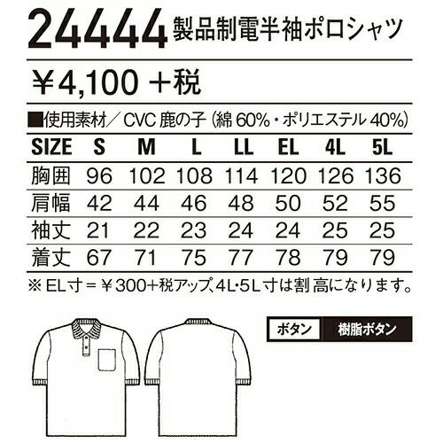 クロダルマ 26902 半袖ポロシャツ(ちょうちん袖) 作業着 半袖 ワークウエア KURODARUMA ワークウェア 作業服(春夏) シャツ(半袖) ポロシャツ 作業服