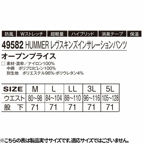 ジャージ HUMMER ハマー レヴスキングインサレーションパンツ 49582 防風 保温 アウトドア スポーツ ジョギング ウォーキング トレーニング 登山 キャンプ トレッキング タウンユース ストレッチ 動きやすい
