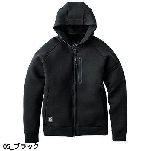 現場仕様の蒸れにくいワッフルフーディー 現場仕様の蒸れにくいワッフルフーディー繊維の中で最も軽くて保水しないポリプロピレンを肌側に使用することで、汗をかいても蒸れにくく、ベタつきにくい。断熱性と速乾性にも優れており、快適に着用し続けることができる。袖口はリブ仕様で腕まくりがしやすい。