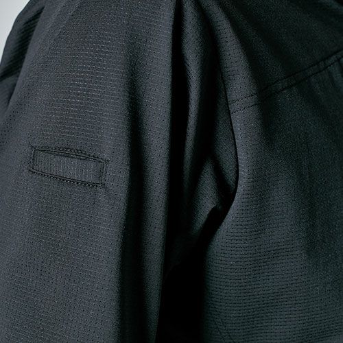 異素材が織りなす鮮やかなケミストリー全てのシーンをアクティブに演出するユーティリティーウェアの進化を体現するフラッグシップモデル登場! ■しなやかな全方向ストレッチ素材をベースに、異素材を組み合わせて誕生した抜群の快適性能を誇るスポーティーテイストユーティリティーウェア■本体素材には伸長率タテ約41%・ヨコ約29%、伸長回復率(1時間後)約90%を誇るハイレベルな全方向ストレッヂ性能を有するナイロン素材を使用。ストレスフリーな動き易さを実現します。■適度にハリ惑を有しながらも優しい肌触りを両立。適度な接触冷感性も併せ持ちリッチな佇まいを発揮しながらも快適な着心地を実現します。■しなやかな風合いながらも一般甚準の3倍以上を誇るハイレベルな引裂き強度(タテ約36N・ヨコ約49N)■優れた抗ピリング性能、抗スナッグ性能(全て5級)等を有し、抜群の生地強度を誇ります。■脇にはレーザー光線パンチング加工で空気穴を発現させた素材を採用し衣服内の熱を効果的に排出。■胸ポケットに配したメタリック調ワッペンや背面等各所に施されたプリント等様々なギミックを搭載し、ソフィスティケートなスポーティーなルックスを表現