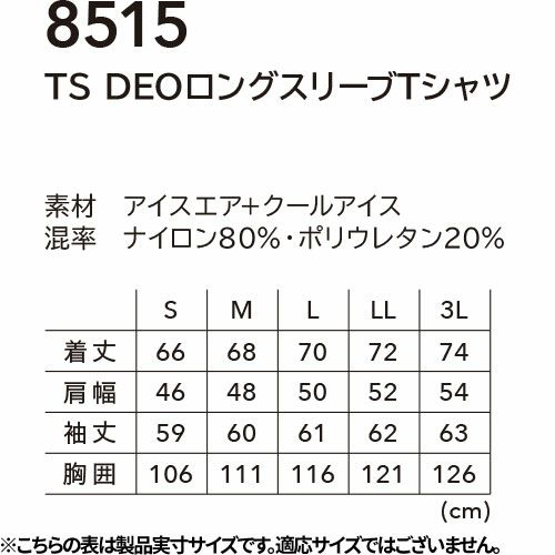 Tシャツ 長袖 藤和 TS Design TSDEOロングスリーブTシャツ 8515 長袖Tシャツ カッコいい シンプル おしゃれ 着心地がよい 動きやすい 丈夫 消臭 吸汗速乾 通気 日焼け防止 UVカット 軽量 接触冷感 カジュアル スポーツ アウトドア