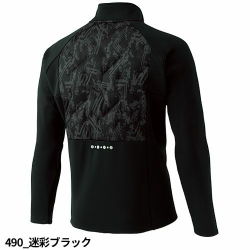 大胆な大柄総プリントの迷彩もモダンな雰囲気機能糸SPEEDRYの天竺ニットは身体の動きに対する追従性に加え吸水性や通気性といった副次的な機能も魅力 ●機能糸SPEEDRYの天竺ニットは身体の動きに対する追従に加えて吸水性や通気性といった副次的な機能も魅力●大胆な大柄総プリントの迷彩もモダンな雰囲気●衿が立ちやすいよう衿先にセットアップテープ入り