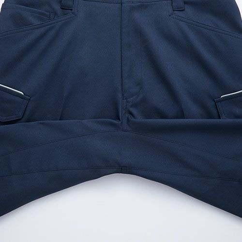 ストレッチ性に優れた植物由来の裏綿エコ素材反射素材や制電糸も採用し安全性にも配慮膝タックなどさまざまな工夫で快適な着心地を実現