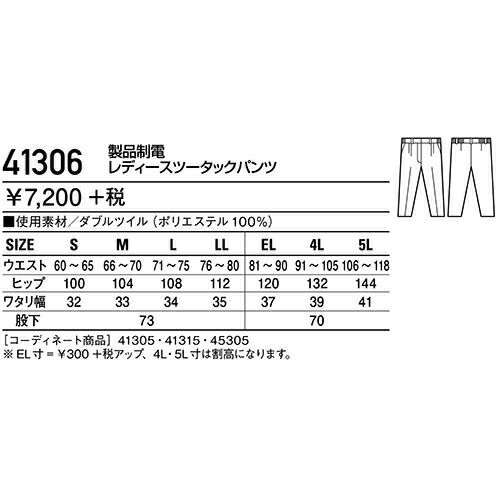 自重堂 作業服 41306 ツータックパンツ 秋冬 レディース 作業着 ボトムス ワークウエア 通年 レディースパンツ
