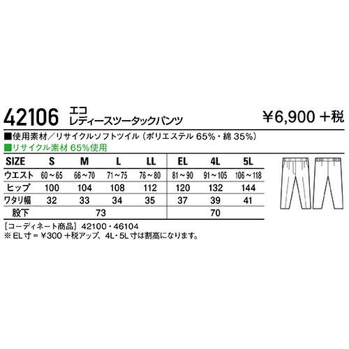 自重堂 作業服 41906 レディースパンツ 秋冬 レディース 作業着 ボトムス ワークウエア 通年