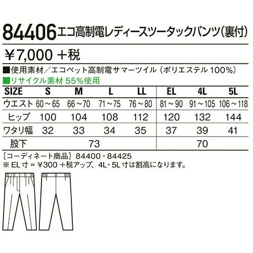 自重堂 作業服 84406 ツータックパンツ 春夏 レディース 作業着 ボトムス ワークウエア レディースパンツ