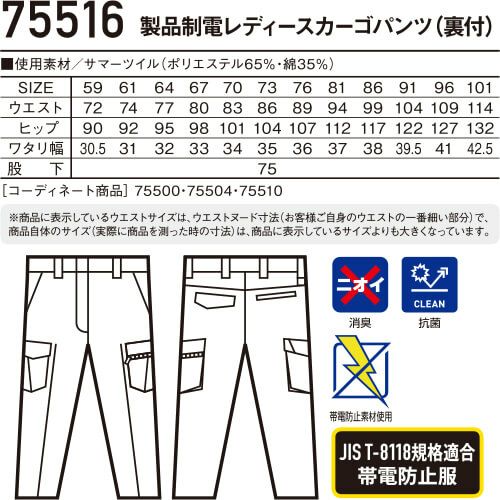 自重堂 Z-DRAGON 作業服 75016 レディースカーゴパンツ 春夏 レディース 作業着 ボトムス レディースパンツ
