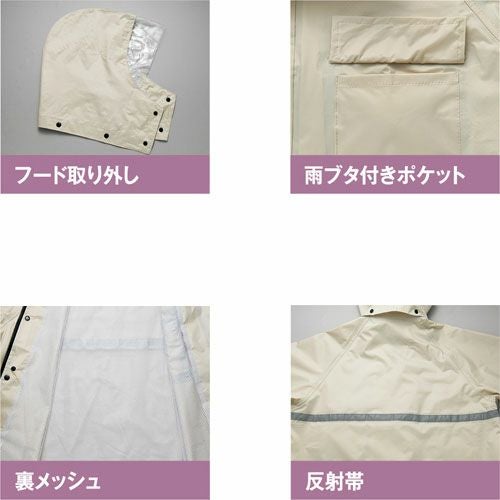 レフレクター(反射材)は、表面が濡れても輝度が変わることが少ない超高輝度マイクロプリズム反射素材(EN471認証品)を使用することにより、最前線で働く人の安全性を高めます。フードは立体設計でフィット感が高く、良好な視界が確保できます。