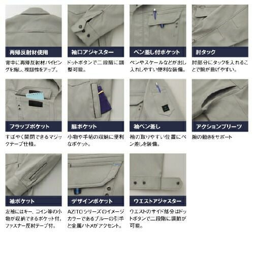 作業服 ブルゾン 作業着 ジャケット ストレッチ 軽い 制電 帯電防止 吸水速乾 保温 ジャンパー 上着 長袖 通年 秋冬 アイトス AITOZ AZ-60601 おしゃれ かっこいい 人気 企業 法人 作業 ユニフォーム 仕事 土木 工事 大きいサイズ 4L 5L 6L
