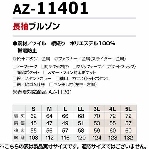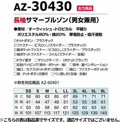 空調服 長袖ブルゾン フルハーネス対応 AZ-30589