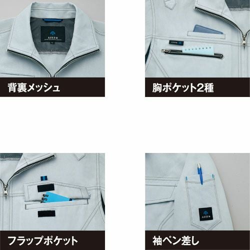 アイトス AZ-30630 長袖ブルゾン AITOZ 作業服 作業着 ワークウエア ジャケット アウター 春夏 メンズ レディース 男女兼用 ワークウェア 帯電防止 遮熱 吸汗 速乾 UVカット ストレッチ