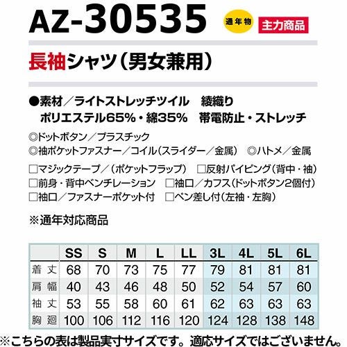 アイトス AZ-30535 長袖シャツ(男女兼用) AITOZ 作業服 作業着 長袖 ワークウエア ボタンダウン シャツ ワークシャツ 秋冬 メンズ レディース 男女兼用 ワークウェア 帯電防止 ストレッチ