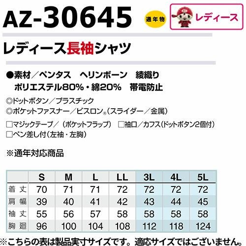 アイトス AZ-30645 レディース長袖シャツ(薄地) AITOZ 作業服 作業着 長袖 ワークウエア ボタンダウン シャツ ワークシャツ 薄手 秋冬 レディース 女性用 ワークウェア 帯電防止 吸汗 速乾 軽量 ストレッチ