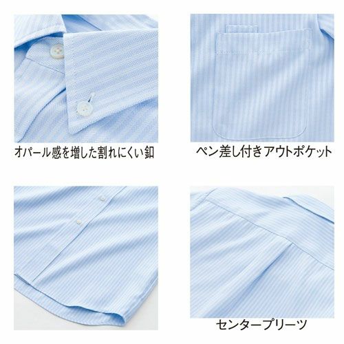 メッシュで涼感UP!(背ヨーク&前身頃部分)アクションプリーツ&ストレッチ性能で動きやすい。