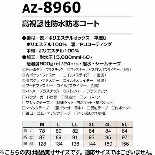 高視認性防水防寒コート AITOZ アイトス TULTEX タルテックス 防寒コート 防寒ジャケット アウター ブルゾン ドカジャン ジャンパー ダウン 上着 防寒着 おしゃれ 秋冬 かっこいい 作業着 メンズ 釣り キャンプ 登山 アウトドア 男性用 撥水