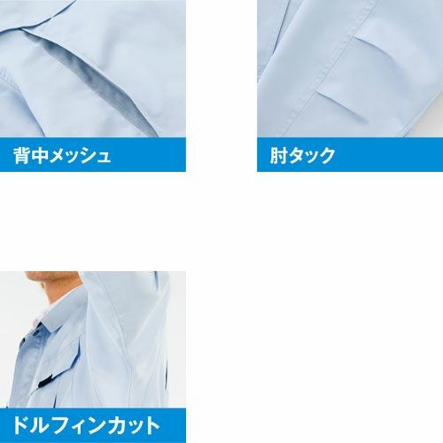 部屋干しできるワークウエア。 吸水速乾・抗菌防臭・消臭効果抜群。アイトス独自のドルフィンカットにより、腕の上げ下げが超スムーズ。さらにJIST8118適合の帯電効果を発揮