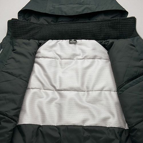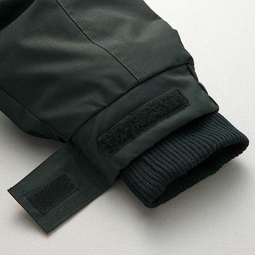 世界基準に準ずる高い視認性を擁する防水防寒ウェア。 内側のパウダーガードが雪や冷気の侵入を防ぎます。