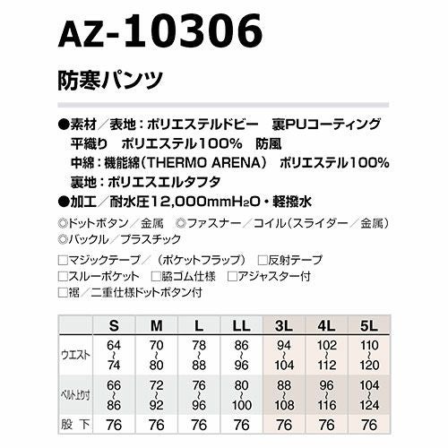 AITOZ アイトス TULTEX 防寒パンツ ワークパンツ 防寒 ズボン 人気 安い 防寒着 おしゃれ 暖かい 秋冬用 かっこいい 作業着 メンズ カジュアル 定番 寒さ対策 屋外作業 屋内作業 あったか シンプル AZ-10306 パンツ 男性用 秋冬 防風 撥水 軽量