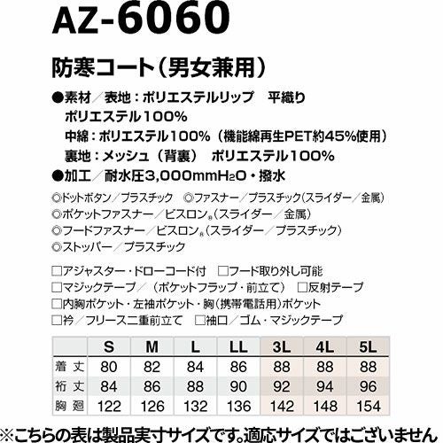AITOZ アイトス 防寒コート 防寒ジャケット 保温 人気 安い アウター ブルゾン ドカジャン 防寒ジャンパー ダウン 上着 防寒着 おしゃれ 暖かい 秋冬 かっこいい 作業着 ワーク マン メンズ 釣り キャンプ 登山 アウトドア AZ-6060 男性用 撥水