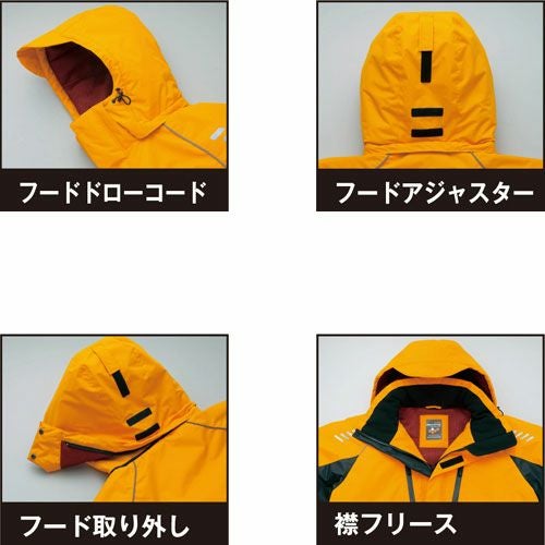 レフレクター(反射材)は、表面が濡れても輝度が変わることが少ない超高輝度マイクロプリズム反射素材(EN471認証品)を使用することにより、最前線で働く人の安全性を高めます。フードは立体設計でフィット感が高く、良好な視界が確保できます。