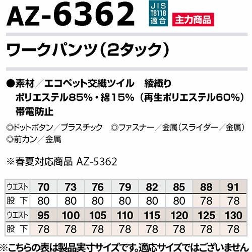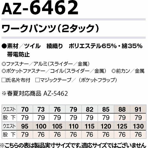 アイトス AZ-6462 ワークパンツ 2タック ツータック AITOZ 作業服 作業着 ボトムス 秋冬 通年 スラックス 作業ズボン 作業パンツ ワークパンツ ズボン おしゃれ かっこいい オフィス ユニホーム 作業 軽作業 外作業 メンズ レディース 男女兼用