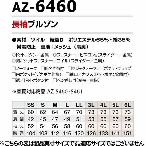 作業服 ブルゾン 作業着 ジャケット 制電 帯電防止 動きやすい ジャンパー 上着 長袖 通年 秋冬 アイトス AITOZ AZ-6460 おしゃれ かっこいい 人気 作業 ユニフォーム 大きいサイズ 4L 5L 6L メンズ レディース 男女兼用 防寒着 防寒ジャケット