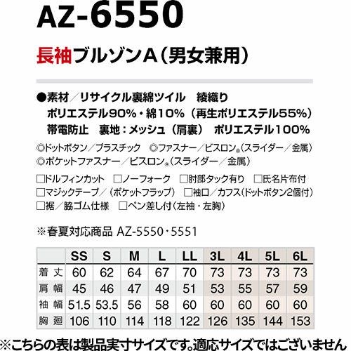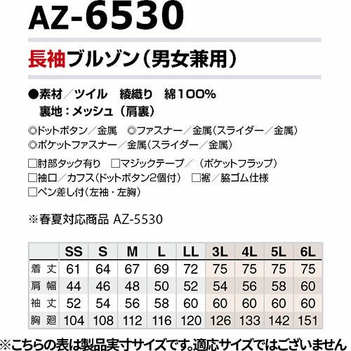 空調服 長袖ブルゾン フルハーネス対応 AZ-30589