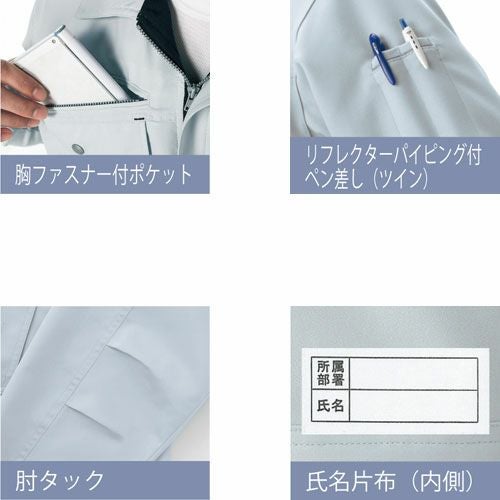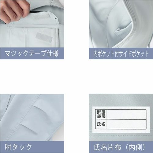 クラボウが共同開発した立体カッティング技術で、腕・肩部分に驚異的な動きやすさを提供。ポケットやペン差しも出し入れしやすいよう設計されております。