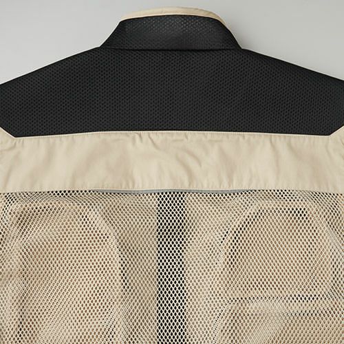 フルハーネスのベルトから影響の受けにくい位置を想定し、腕部分に大型のファスナーポケット・ウエスト中央側に取り出し口のあるファスナーポケットを配置。またスペーサーパッドを取り付けることにより、フルハーネス着用時も襟元までダイレクトに風を感じることができ、快適に使用することができます。