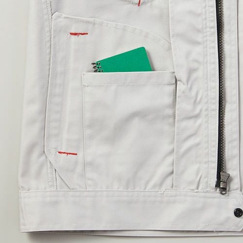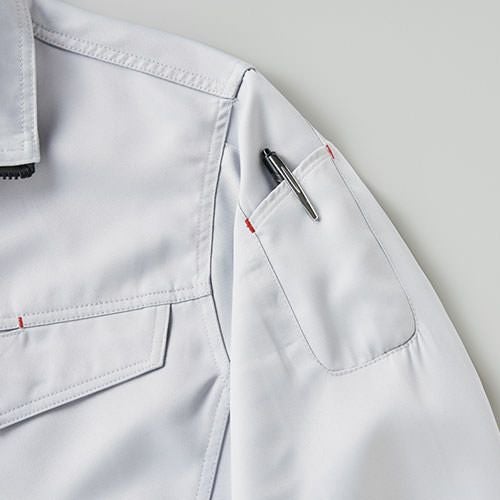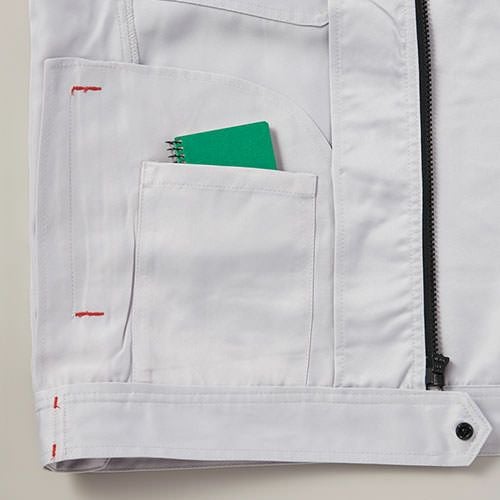クラボウが共同開発した立体カッティング技術で、腕・肩部分に驚異的な動きやすさを提供。ポケットやペン差しも出し入れしやすいよう設計されております。