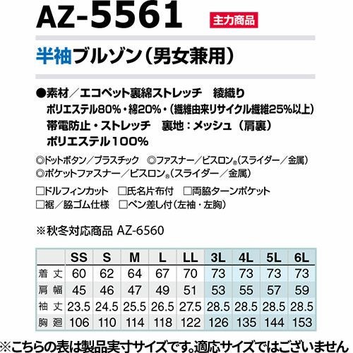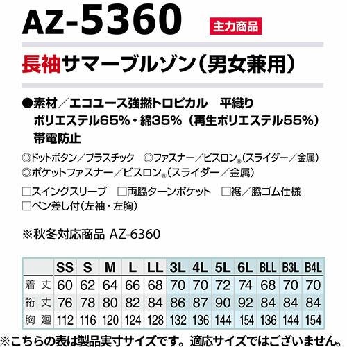 アイトス AZ-5360 長袖サマーブルゾン AITOZ 作業服 作業着 ワークウエア ジャケット アウター 春夏 メンズ レディース 男女兼用 ワークウェア 帯電防止 涼しい