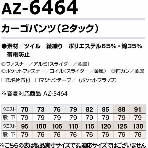 アイトス AZ-6464 カーゴパンツ 2タック ツータック AITOZ 作業服 作業着 ポケット付き ボトムス 秋冬 通年 カーゴパンツ おしゃれ かっこいい 人気 ズボン 作業ズボン 作業パンツ 作業 工事 土木 塗装 DIY メンズ レディース 男女兼用 帯電防止