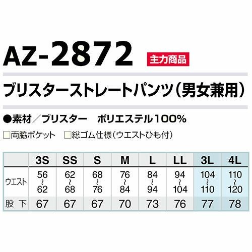 アイトス AZ-2872 ブリスターストレートパンツ(男女兼用) AITOZ ジャージ カジュアルウェア パンツ ズボン メンズ レディース 男女兼用 作業着 作業服 制服 ユニフォーム